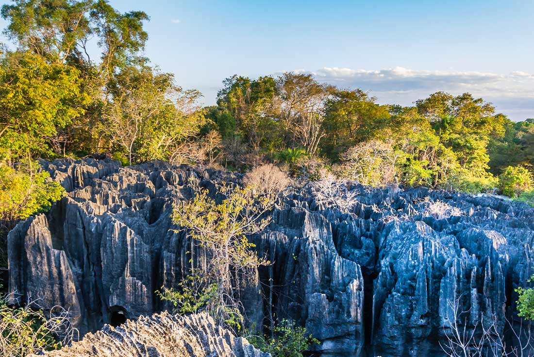 - Trek through a forest of limestone karsts and cross a sheer drop on a suspended bridge at the Great Tsingy, keeping an eye out for native wildlife including 11 species of lemur.