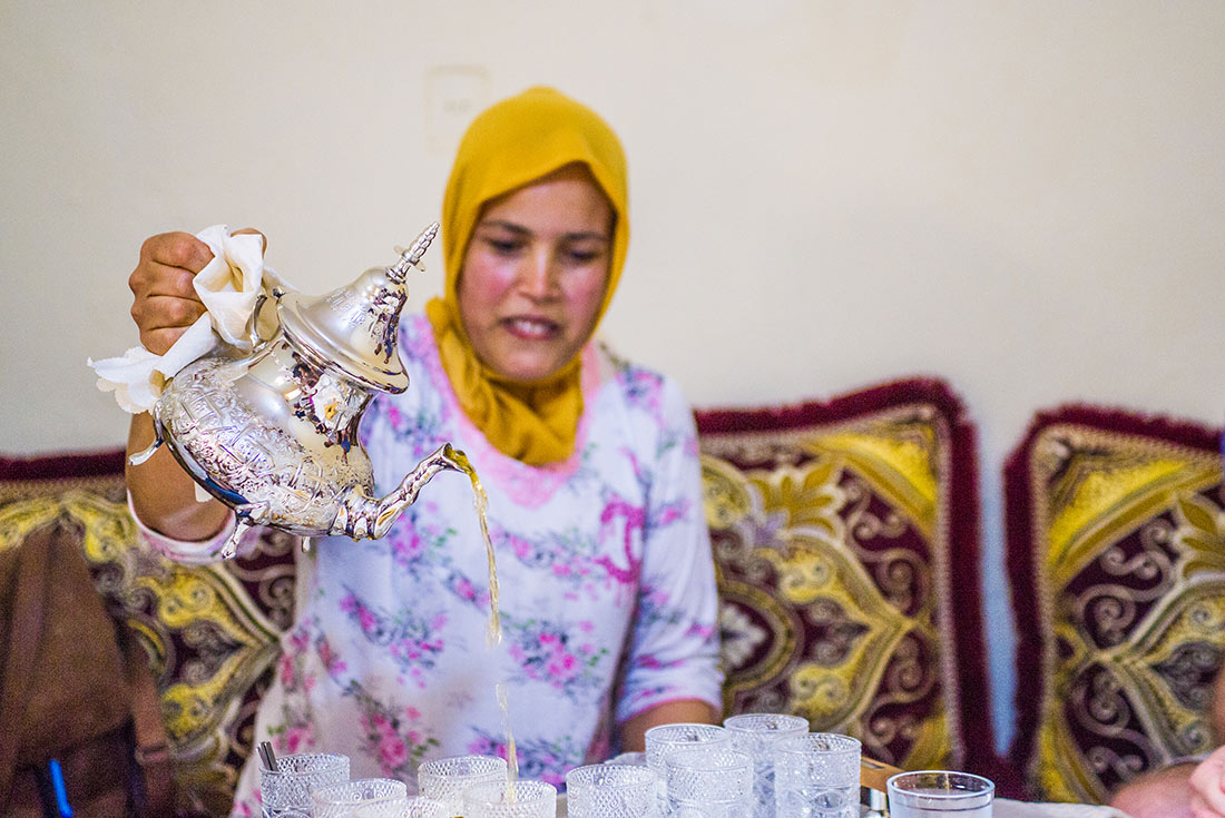 Sit down for a traditional Moroccan breakfast of homemade soup, tea, coffee and (most importantly) olive oil served with Moroccan bread. Get involved in preparing this flatbread (khobz), which is widespread and almost synonymous with Moroccan food. There's nothing like making and tasting the real thing under the guidance of those who do it best. Then, set off to Issoumar, trekking through more of Morocco's spectacular landscape. The route crosses small hills and leads to Timtda village, where you'll take a break and enjoy a picnic lunch. From here, climb 200 m uphill to the Tissardan pass, which offers a fantastic view of the M’Goun Valley. Then, descend 300 m to Issoumar village, where you’ll spend the night. This afternoon, listen to traditional folk tales and play music with the local women inside the guesthouse. Singing is a big part of local music, so expect to sing along with your female host – this isn’t a performance, but rather a unique opportunity to get involved and be a part of the experience!