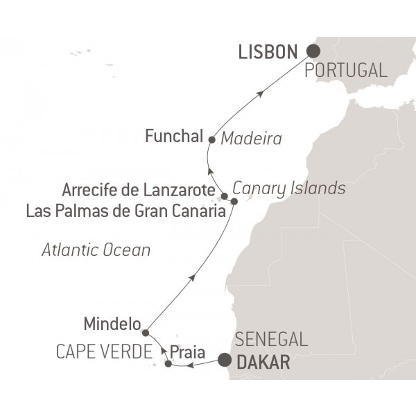 From Dakar, the bustling capital of Senegal, set sail aboard Le Dumont-d’Urville for a musical cruise between Spain, Cape Verde and Portugal. A circuit in partnership with RADIO CLASSIQUE, with the exceptional presence of Alain Duault.