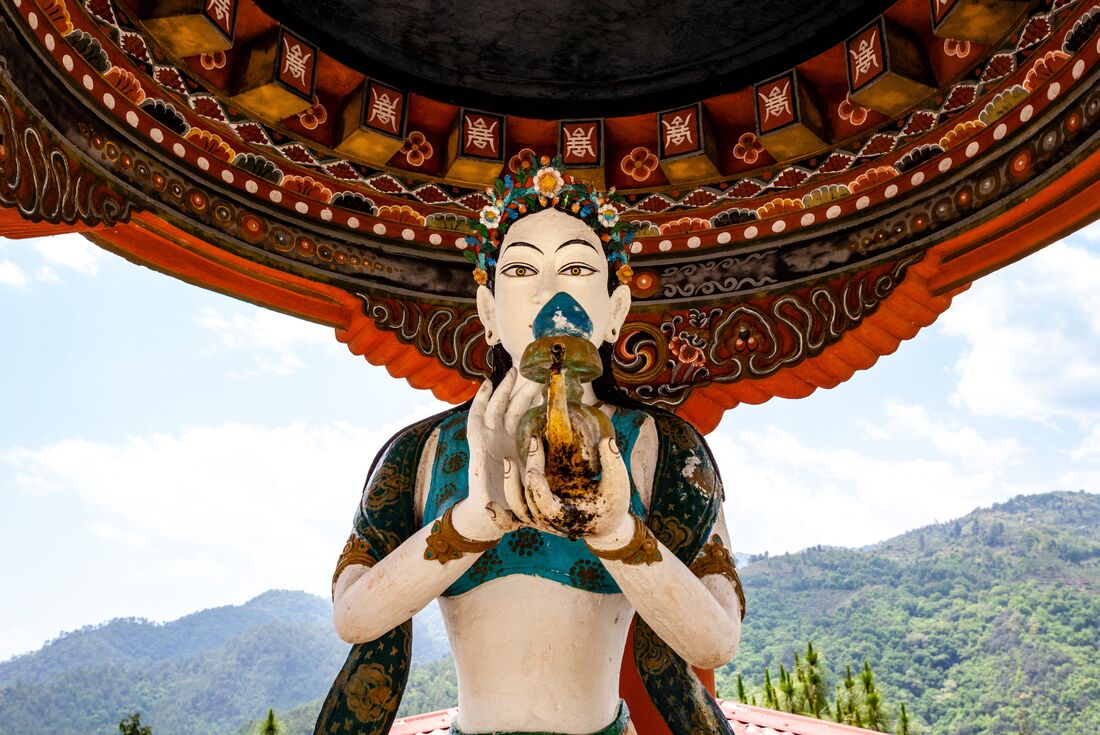 After breakfast, start your day with a light hike to Wangditse Monastery. The trail begins at the Sangaygang Viewpoint and winds through pine forests before reaching the monastery. Take a moment for some quiet reflection at this 18th-century temple, soaking in the views of the valley surrounding you. Have a Bhutanese lunch at female-owned restaurant Edelweiss, then visit the Buddha Dordenma – a 54-m-tall gilded bronze Buddha statue housing 125,000 smaller Buddha statues. Next, stop by the Bhutan Post Office Headquarters, where you can make your own personalised postal stamps – take them home as a souvenir or send a postcard home with a special touch! The Bhutan Postal Museum showcases some of the nation’s most rare and unusual stamps, like the famous ‘talking stamps’ (tiny playable vinyl records). Later, visit the Gagyel Lhundrup Weaving Centre where you can watch local artisans make their wares and buy some of your own, if you wish. End your day with a visit to the Bhutanese Crafts Bazaar, browsing the 80 stalls selling traditional handicrafts like vibrant tshoglham (embroidered boots) and thangkas (intricate paintings).