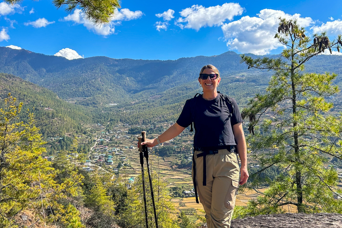 Kuzu zangpo la! Welcome to Bhutan, the ‘Land of the Thunder Dragon’. When you arrive at Paro International Airport, you’ll be met by your female local leader and transferred to your hotel in Thimphu – Bhutan’s capital city which sits at around 2300 m (7550 ft) above sea level. Catch your first glimpses of the Thimphu Valley during the drive! Your adventure begins with a welcome meeting at 6 pm. This evening, you’ll have a welcome dinner with your group. Your accommodation tonight is at Thimphu Tower – female owner Tshering Wangmo turned what was once her family home into this hotel in the 1980s and swiftly made it her goal to empower local women and girls with job opportunities in the hospitality industry. Tshering employs girls and single mothers who don’t hold a university degree – an endeavour inspired by her own challenges being taken seriously in the hospitality industry without formal training of her own.