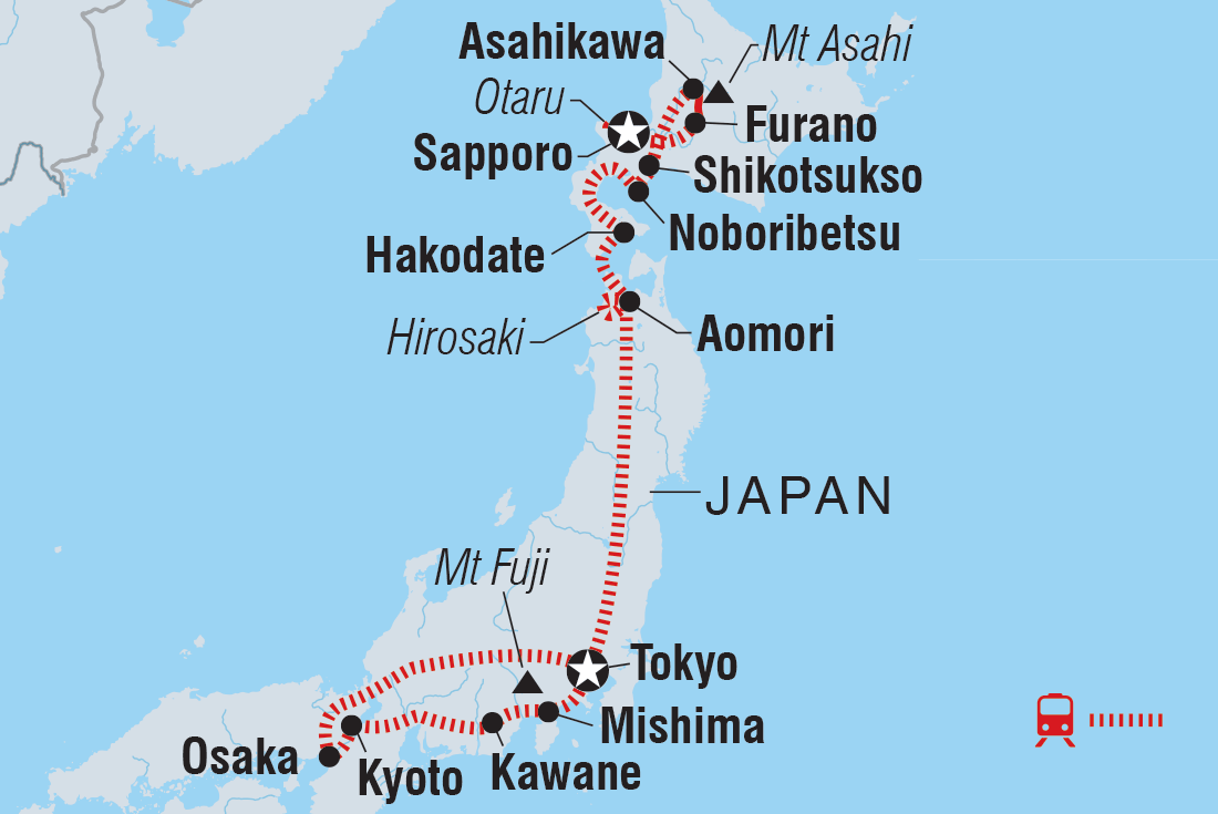 - Explore some of Japan’s northern natural wonders. See Hell Valley’s volcanic steam, Mt Asahi’s peaks and the serene waters of Lake Shikotsu and discover the culture of Ainu people – the first indigenous group in Hokkaido.
