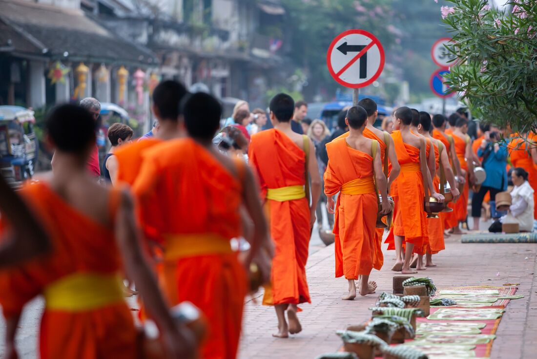 This morning is free for you to explore Luang Prabang at your own pace. Maybe head to Kuang Si – a beautiful three-tiered waterfall surrounded by brightly coloured tropical foliage and flowers. Here, you might want to set off on the round-trip hike or take a dip in the refreshing water at the base of the waterfall. Later, board a boat and watch the sun set as you cruise down the Mekong – Asia’s longest river.