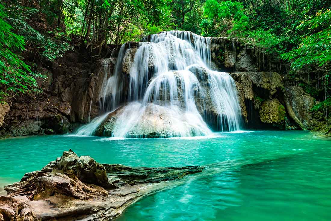 - Swim in idyllic rock pools fed by waterfalls in the seven-tiered Erawan National Park. If you’re game, you can even take a short hike to the top for views across the jungle.