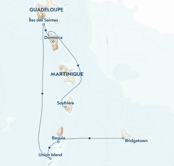 Sail with the trade winds aboard a graceful tall ship, anchoring in the sheltered bays of the eastern Caribbean’s most captivating islands. Swim in warm, clear waters; wander through waterfront towns shaped by seafaring traditions; and follow rainforest trails into lush interiors. Explore historic forts, relax on palm-fringed beaches and experience the distinctive character of each island—from Dominica’s wild natural beauty to Guadeloupe’s French-inflected culture and the dramatic volcanic landscapes of St. Lucia. Along the way, settle into a relaxed rhythm that invites deeper connection with the region’s rich island heritage.