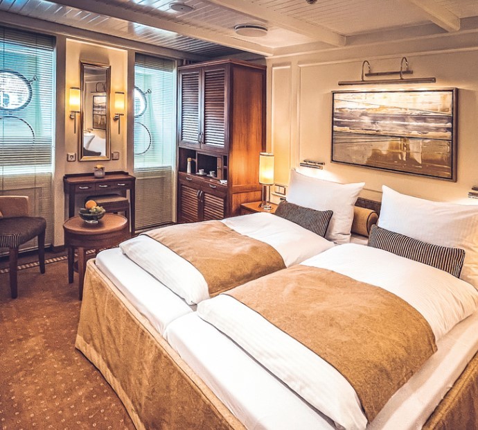 Onboard, the ship offers 69 outside cabins and suites, many with private balconies, all fitted with high-end amenities and refined finishes. Public spaces include a panoramic restaurant, lido bar and bistro, elegant lounge with a Steinway grand piano, library, sun deck, and boutique. A full wellness and spa area, fitness centre with ocean views, swim platform, water sports equipment, and Zodiac boats support both relaxation and active exploration. Designed as a true sailing vessel rather than a conventional cruise ship, SEA CLOUD SPIRIT sets a benchmark for combining windjammer tradition, spacious design, and 21st-century comfort at sea.