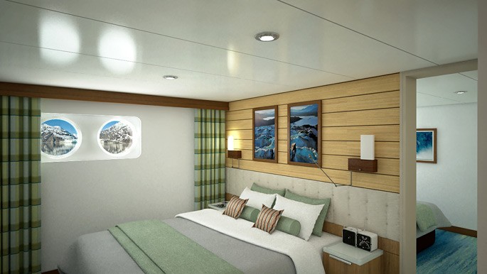 Accommodating 100 guests in 50 comfortable cabins across four decks, Quest features twin Zodiac boarding platforms for swift disembarkation, a shallow draught for close-to-shore navigation, and wide-ranging public areas. Guests can enjoy a relaxed dining experience with sustainable, locally inspired cuisine, unwind on the sundeck, or visit the lounge, gym, or Global Gallery. Open access to the Bridge invites a deeper engagement with navigation and wildlife spotting alongside the Captain and crew. Every detail is crafted to maximise discovery, comfort, and a shared sense of adventure.