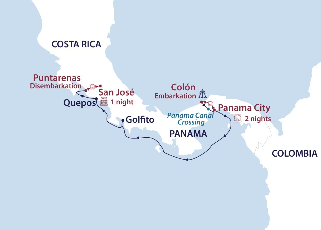 Stretching 65 kilometres (40 miles) from shoreline to shoreline, the Panama Canal slices through one of the world’s most captivating isthmuses. Join us for a remarkable crossing as we navigate the locks and lakes of this engineering marvel. Beyond the canal, we journey into the heartland of Central America’s wildlife-rich rainforests and waterways and meet its warm and welcoming people. This voyage blends the marvels of human ingenuity with the wonders of the natural world in a region where wildlife, culture, and biodiversity combine to create the ultimate travel experience.