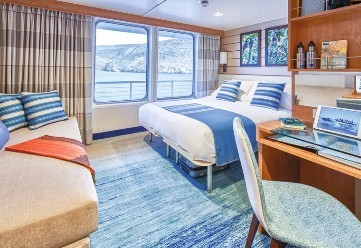 Accommodating 100 guests in 50 comfortable cabins across four decks, Quest features twin Zodiac boarding platforms for swift disembarkation, a shallow draught for close-to-shore navigation, and wide-ranging public areas. Guests can enjoy a relaxed dining experience with sustainable, locally inspired cuisine, unwind on the sundeck, or visit the lounge, gym, or Global Gallery. Open access to the Bridge invites a deeper engagement with navigation and wildlife spotting alongside the Captain and crew. Every detail is crafted to maximise discovery, comfort, and a shared sense of adventure.