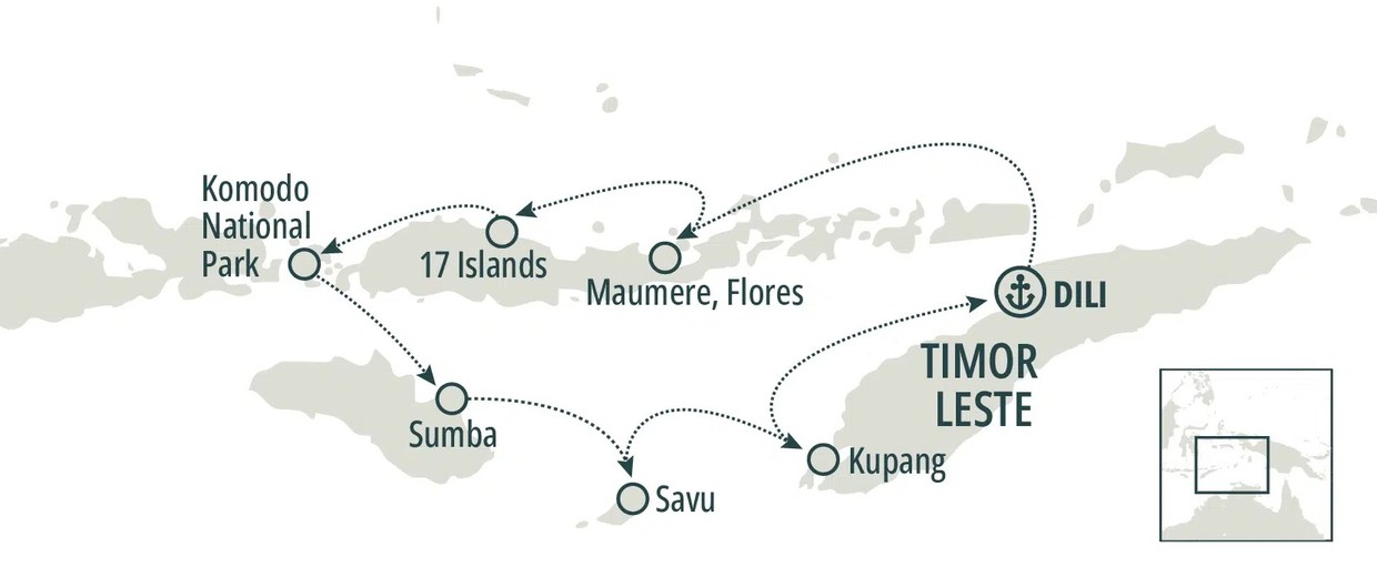This is expedition travel bridging ancient cultures with modern nations: respectful, transformative, and utterly fascinating. Your trans-Timor Sea adventure begins in young Timor-Leste and concludes in tropical Australia.