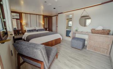 Witness this fantastic microcosm of natural history by joining a true pioneer in Galapagos travel. Standing on the lava of Fernandina with a vista of volcanoes; snorkeling with a friendly sea lion; or sitting in a lush field on Santa Cruz watching the giant tortoises graze — these are the moments of sheer wonder you can expect on this small-ship adventure. IE invited you aboard the 32-guest Evolution, which offers the ideal retreat with spacious cabins, superb cuisine and a host of amenities. From the moment you arrive and see the first iguanas and sea lions basking on the dock where we board our Galapagos cruise ship, you are delighted. And for all the documentaries and research most people have seen on these islands, nothing compares to the experience of being here.