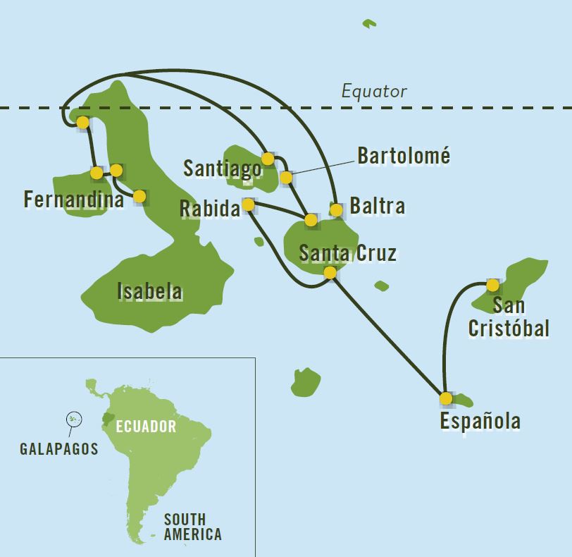 Thirteen major islands, six minor islands and 42 volcanic islets make up Ecuador’s Galapagos Archipelago, and while most of these islands are known by both English and Spanish names, you’ll find the landscapes and wildlife on each isle to be singularly enchanting. It is against a contrasting patchwork of deserts, forests, volcanoes, beaches and cobalt water that International Expeditions invites you on a Galapagos cruise to discover the islands’ compelling wildlife.