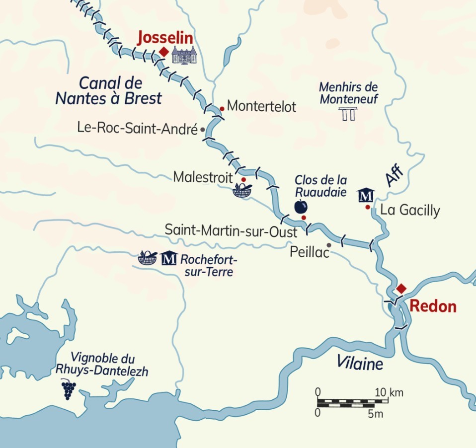 This unique itinerary combines the charm of small villages with memorable excursions — from Château de Josselin and the flower-filled streets of Rochefort-en-Terre to a Michelin-starred dining experience and a traditional cider tasting. Along the way, you’ll enjoy peaceful cruising, regional cuisine, and the gentle rhythms of rural France.