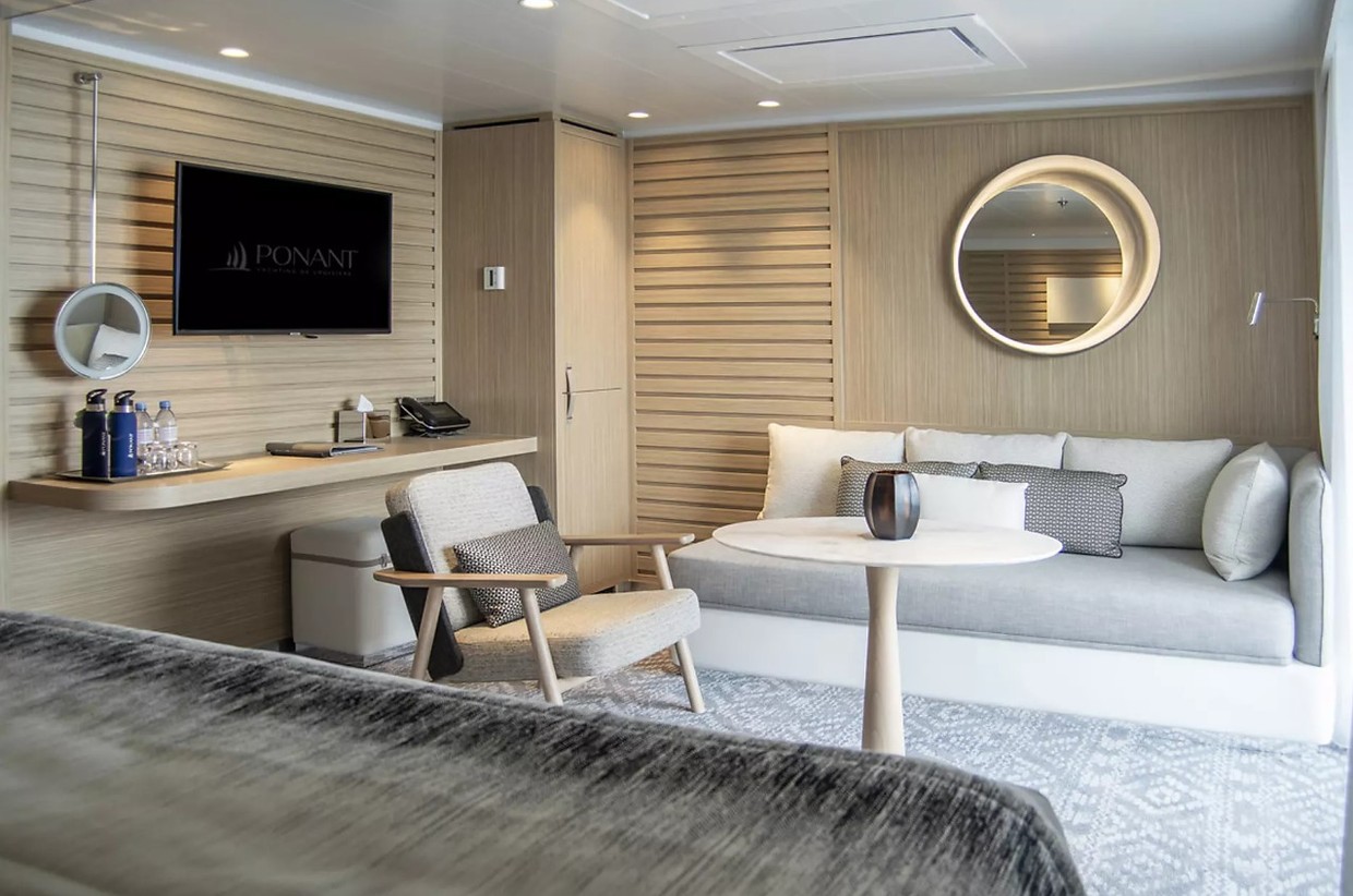Le Bellot is built for controlled, immersive expedition cruising at a smaller scale, carrying 184 guests across 92 staterooms and suites. The ship’s architecture prioritises quiet flow, long sightlines and restrained interiors, with balcony accommodation as the baseline and larger suite categories extending to 45 m². Public spaces follow the same disciplined design: lounges, theatre, pool deck and dining venues arranged to maintain separation, acoustics and calm movement throughout the vessel. Gastronomy holds a central role, executed in a French framework and integrated into the broader onboard routine.