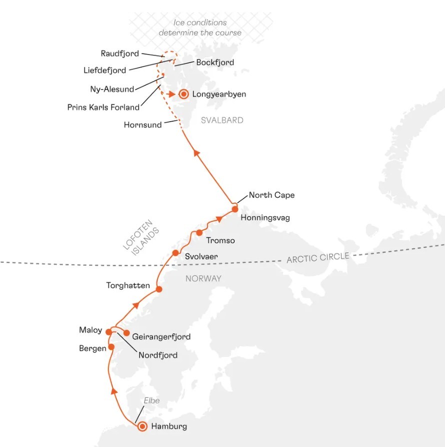 With its mighty glaciers and polar bears, the Arctic seems so far away and the route there so complex. With the small HANSEATIC nature, however, your adventure starts in Hamburg. Your destination: Norway’s fjords, the legendary North Cape and the main highlight, Svalbard.