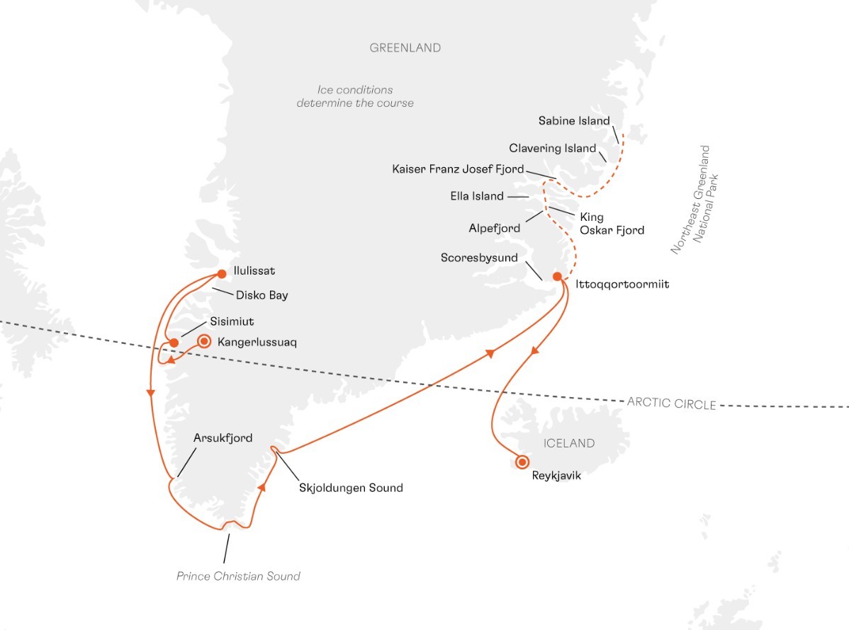 Discover the best of Greenland on this 15-day expedition aboard HANSEATIC spirit, exploring both the wild west and remote east coasts from Kangerlussuaq to Reykjavik. Journey through a landscape of dramatic contrasts — from colourful settlements and majestic icebergs in Disko Bay to the untouched wilderness of Northeast Greenland National Park, home to musk oxen, whales, Arctic foxes, and even polar bears. Cruise through spectacular fjords such as Prince Christian Sound and Alpefjord, and experience true remoteness with Zodiac landings and hikes across the tundra. As the nights grow longer, watch the Northern Lights dance across the Arctic sky from the comfort of the ship’s deck — a fitting finale to this extraordinary voyage.