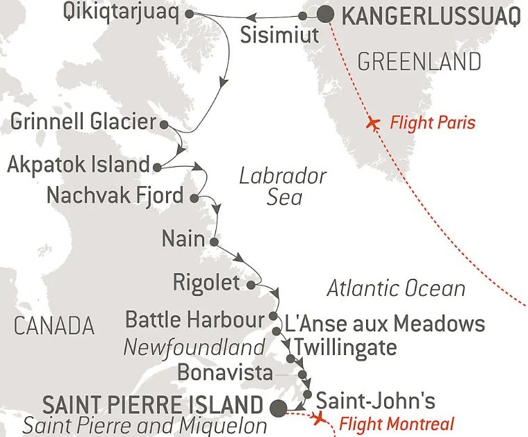 See the infinity of the polar expanses unfurl its grandeur during an cruise taking you from Greenland to the Nunavut to reach the coastlines of Labrador and the sumptuous island of Newfoundland. Encounters with local people, the exciting history of the Arctic territories and many unforgettable hikes will mark this 15-day journey aboard Le Lyrial.