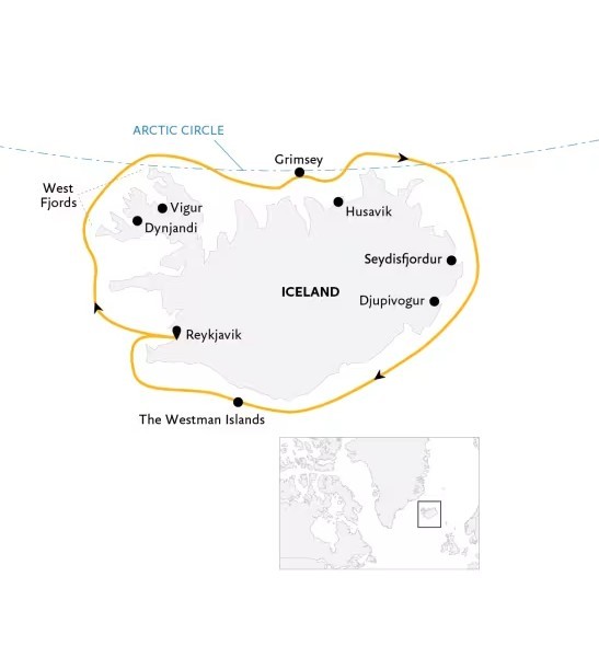 Experience the thrill of a lifetime—a complete circumnavigation of Iceland, the legendary Land of Fire and Ice. Our 12-day Iceland Circumnavigation: Mountains, Volcanoes and Waterfalls takes you around the entire island nation, starting and ending in Reykjavik. Explore by small polar ship, Zodiac, kayak, on foot, and occasionally by coach, as you witness thundering waterfalls, vast glaciers, erupting geysers, volcanic cliffs, and remote wild coasts. Cross the Arctic Circle, spot iconic puffins, marvel at Vatnajökull Glacier, and photograph Dettifoss—Europe’s most powerful waterfall.