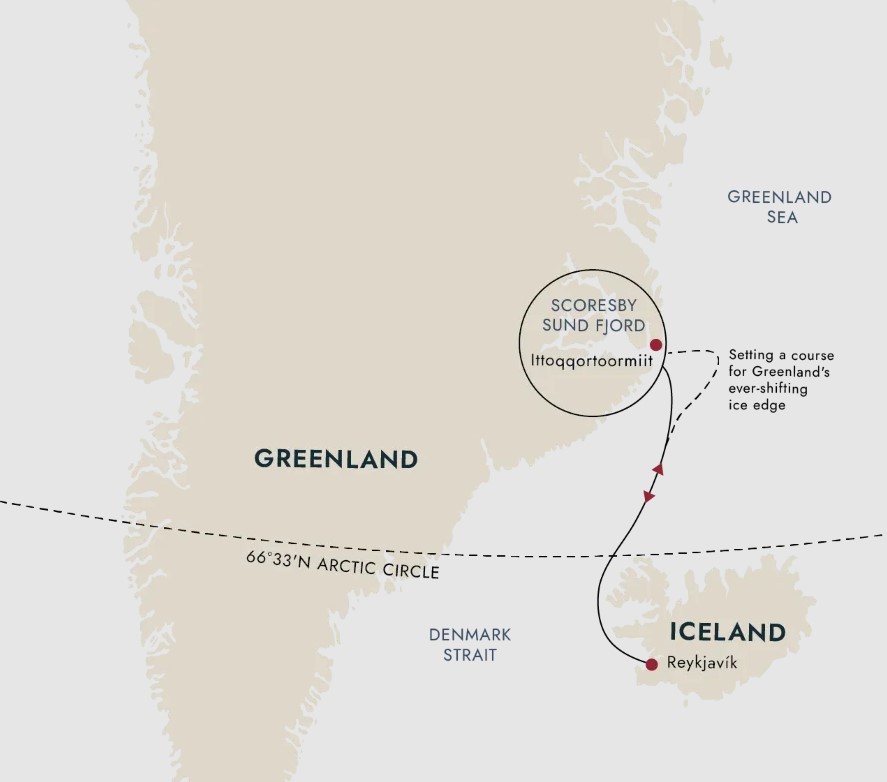The vast, untouched wilderness of Greenland’s rarely-visited east coast is accessible by ship for only a few months of the year. Our destination is Scoresby Sund, an immense system of fjords and glaciers that fans out over 24,000 square miles where you’ll soak up the beauty, silence and natural wonder of this truly unique destination.