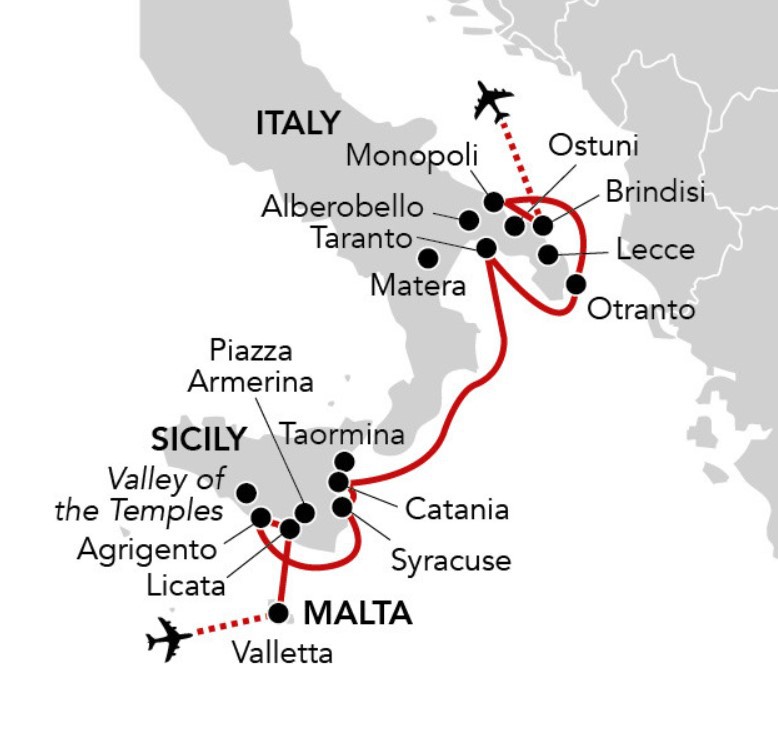 Here is the perfect voyage for those who love Italy, travelling in the company of less than 100 like-minded travellers and sailing aboard a delightful small ship with a varied programme of interesting visits ashore. Setting sail from Valletta’s Grand Harbour, we will spend time in Sicily to appreciate the island’s rich legacy of so many invading civilisations followed by time in Puglia, our itinerary taking us off the beaten track to many places that are beyond the reach of the mega-cruise ships.