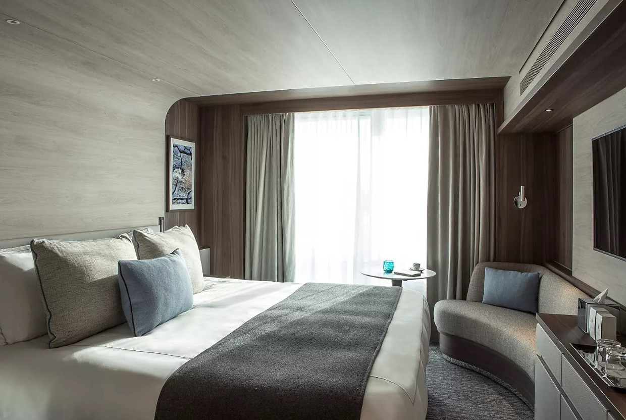 Aboard Le Commandant Charcot, a warm cocoon, savour the discreet and refined comfort of its spaces opening out onto the world. From the Blue Lagoon pool, the Observatory Lounge or the uninterrupted outside promenade deck, you will appreciate the splendour of the winter panoramas over the Arctic Circle.
