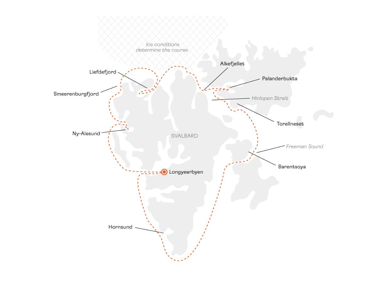 Highlights and circumnavigation depending on the conditions  (including Ny-Alesund, Smeerenburgfjord, Liefdefjord, cruising through the Hinlopen Strait, Alkefjellet, Palanderbukta, Torellneset, cruising through Freeman Sound, Barents Island, Hornsund)Welcome to Svalbard – wild, raw island beauty and home to a fascinating animal world. In the kingdom of polar bears, your state-of-the-art expedition ship moves flexibly and safely thanks to its highest ice class – with one goal in sight, circumnavigation. Will it happen? You will only find out on board, since the expedition’s course will be determined by the weather and ice conditions. Every day is packed with experiences which bring together the pioneering spirit of the past and the thirst for action of the present. A passionate expedition spirit will also be awakened in you when the Zodiacs bring you to remote coastlines or, with luck, to see whales, walruses and polar bears.The small settlement of Ny-Alesund is known for great polar history and international research. The world’s northernmost year-round research station is devoted to meteorology and research into global warming and the Northern Lights. Around 30 people live here in the winter and about 120 people in the summer. In Ny-Alesund you can find the world’s northernmost post office.An impressive Arctic landscape of steep mountains surrounds the Smeerenburgfjord. When your expedition ship cruises here, you will be able to see some fantastic glacier views. On a shore visit, you might see the timid Arctic fox.In the Liefdefjord, the majestic Monacobreen glacier will catch your eye. Blocks of ice keep falling into the fjord from the 5 km (3.1 mi.) wide front. Take a look from the deck or from a Zodiac. The glacier was named in honour of Prince Albert I of Monaco, who explored the area in 1906 and 1907 with Gunnar Isachsen.If the conditions allow it, you’ll venture forth into the waters of north-east Svalbard, where a sense of pure expedition prevails. At only around 1,000 km (621 mi.) from the North Pole, every extra kilometre may be increasingly difficult to negotiate. Will the ice grant a passage through the eye of the needle in the Hinlopen Strait? Pack ice often builds up here, making this a challenging route. The ability to complete a circumnavigation depends on this passage.The captain and officers will constantly look for impressive scenes such as the cliffs of Alkefjellet: the “bird mountain” is inhabited by thousands of birds from numerous species, including thick-billed murres, kittiwakes, glaucous gulls, Arctic terns and eider ducks.The Zodiacs will also take you ashore in Palanderbukta on the island of Nordaustlandet, which is largely covered in ice caps. On a hike through the sparse tundra, keep an eye out for Svalbard poppies and purple saxifrage.Walrus herds like to lie on the flat ledges of rock in Torellneset. The mighty bulls are a formidable and memorable sight even from a respectful distance – they can weigh over 1,000 kg (2,205 lb) and grow to 3.5 m (11.5 ft) in length.Weather and ice permitting, you will pass through the narrow Freeman Sound. Keep your eyes peeled: whales seek out protected biotopes off Svalbard and will happily follow ships that are passing the archipelago from time to time.On Barents Island, you may be able to spot reindeer in their flourishing natural habitat. The island is also an important area for polar bears, which bring their cubs into the world here. With a little luck and from a safe distance, you will be able to observe these animals from the ship.Forge your way along deserted coasts like the great pioneers before you and visit Hornsund, where hundreds of thousands of little auks live on the shores. Blubber ovens, houses and graves are the main remnants of the early European whale industry here: some 50 whaling stations were registered in Svalbard. This site is one of the oldest and comes from a time when whaling was still operated from the shore.