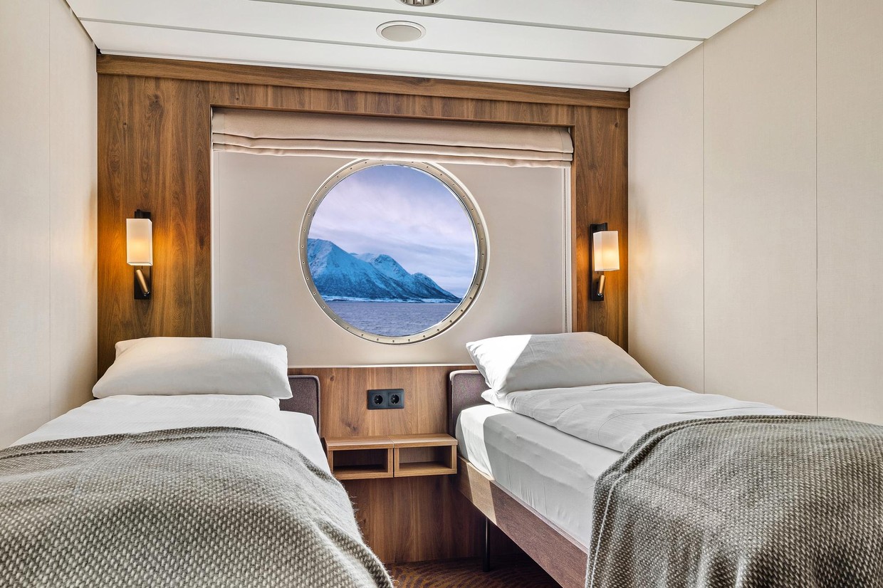 Vessel Type: Expedition Ship Length: 135,75 m Passenger Capacity: 500 Built/Refurbished: 2003/2021 MS Midnatsol, named after the magical Midnight Sun of northern Norway, offers a warm, Art Deco-inspired atmosphere, where golden hues reflect the beauty of endless summer days. Built in 2003 and lightly refurbished in 2021, the ship features three unique restaurants, an Explorer Lounge & Bar, a panoramic sauna and fitness room, and inviting cabins designed for comfort. Its interiors are adorned with Norwegian art and natural colour palettes that create a cosy yet modern maritime experience. Onboard, guests are guided by an expert Expedition Team who bring Norway’s landscapes and heritage to life through enriching talks and guided excursions. From scenic hikes and cultural tours to locally sourced cuisine and relaxing hot tubs, MS Midnatsol blends contemporary comfort with the rugged romance of Norway’s coast. The ship is set to become a Signature vessel in 2026, offering upgraded features and future voyages to Svalbard.