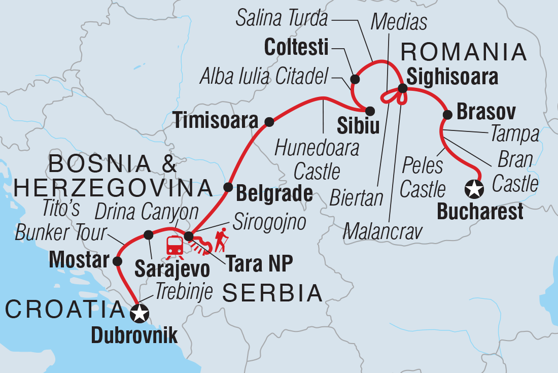 Discover the beauty and history of the Balkans on this 18-day tour that travels from Dubrovnik in Croatia through Bosnia and Herzegovina and onto the lively nightlife of Belgrade in Serbia, through the heart of Transylvania and on to Bucharest. Along the way you’ll sample excellent wines, learn about the war years, stop by the famed Old Bridge of Mostar, discover Tara National Park’s spectacular scenery, and traverse medieval fortresses and fairytale castles. This tour combines battle zones, mountain scenery, bunkers and bars and melds the past with the present to create an adventure that ticks all the boxes.