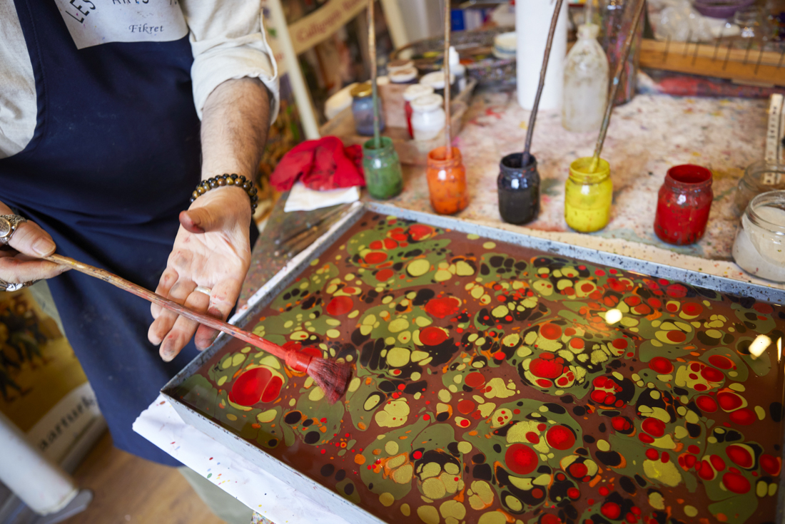 - Learn the art of water marbling (Ebru) by using traditional materials like earth dyes, horsehair and rose branch brushes – you can paint your own masterpiece to take home!