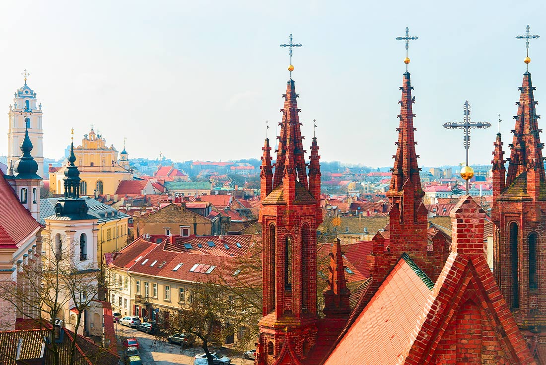 Leave the Baltic coast behind and travel across Lithuania to Trakai which is home to the impressive 14th century Trakai Island Castle. Set on a small island in the middle of Lake Galve, this is the only castle in Eastern Europe that is built on an island. Your visit will get off to a delicious start as you learn how to make perfect kybyns – the traditional Lithuanian pastries the area is famous for. After filling up on the hearty pastries filled with mutton and onion and a bowl of hearty soup, head over to the castle grounds to explore. After, you’ll continue to Vilnius and your hotel for the night.