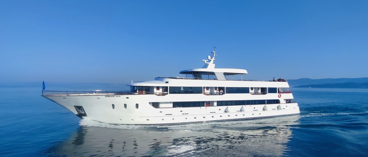 Vessel Type: Small Ship Length: 47.6m (157.44 ft) Passenger Capacity: 38 The MV Adriatic Sun, launched in 2018, is a deluxe superior vessel that offers a premium cruising experience along the stunning Adriatic coastline. This luxurious ship boasts modern amenities designed for comfort and style, including 19 spacious cabins across three decks. With a maximum capacity of 38 passengers, the Adriatic Sun ensures a personalised and intimate atmosphere while maintaining high standards of service. Guests can enjoy well-appointed cabins with air conditioning, LCD TVs, safes, and daily cabin service. Cabins on the upper deck feature balconies, providing beautiful sea views, while the main and lower decks offer additional spacious cabins. The ship's design is centered around comfort, with a fully air-conditioned salon, bar, and dining area, where passengers can relax in style. The top deck is a highlight, offering a sunbathing area, a jacuzzi, and ample space for leisure activities. The vessel is also equipped with a swimming platform for easy access to the water. Attentive crew service throughout the journey.