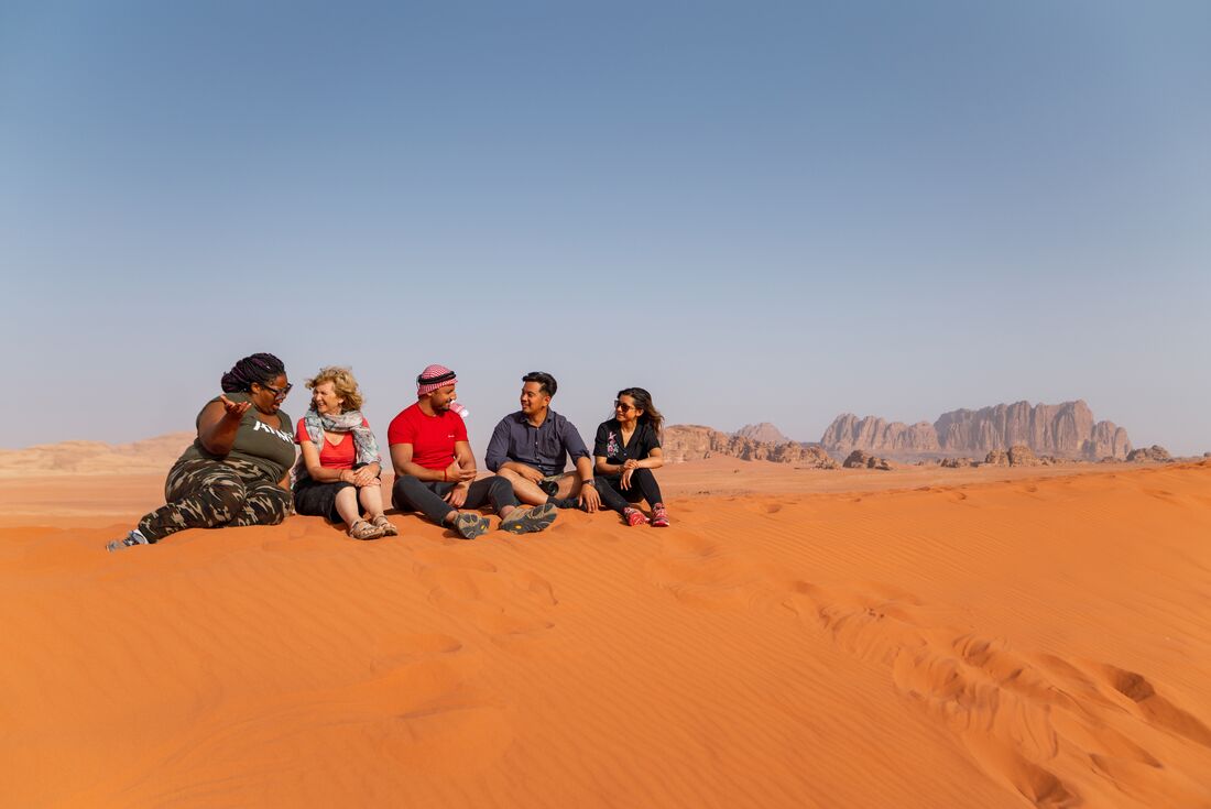 Rise and shine early this morning to see the sunrise over the sand dunes of Wadi Rum. Set out on a moderately difficult hike with your leader and a local Bedouin guide to get the best vantage of the brightening skyline – this is one early wake-up you won’t want to miss. Then, leave the desert behind and set out for the water, arriving at Aqaba for a snorkel at the Aqaba Marine Reserve. Search for a range of local Red Sea marine life, including clownfish, lionfish, sea turtles and sea goldies. After snorkelling, travel to the Dead Sea for a sunset swim.