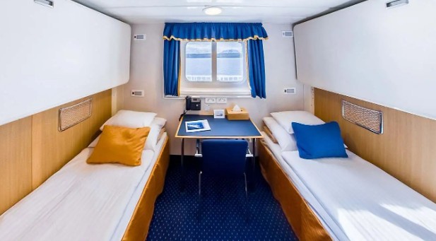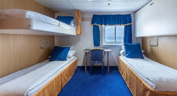 The Ocean Nova, built in Denmark in 1992 and fully refurbished in 2006, is a small yet comfortable expedition vessel accommodating up to 84 passengers. Cabins are spread across two decks and include single, double, and triple accommodations, all with sea views and private facilities. Designed with Scandinavian light woods, the cabins feature ample storage, desks, and flexible bedding arrangements, ensuring a practical and cosy retreat after a day of exploration. Passengers can relax in the Panorama Lounge, which offers panoramic views, daily briefings from the expedition team, and lectures on subjects ranging from ornithology to geology, while the library, small gym, and medical facilities enhance onboard comfort.