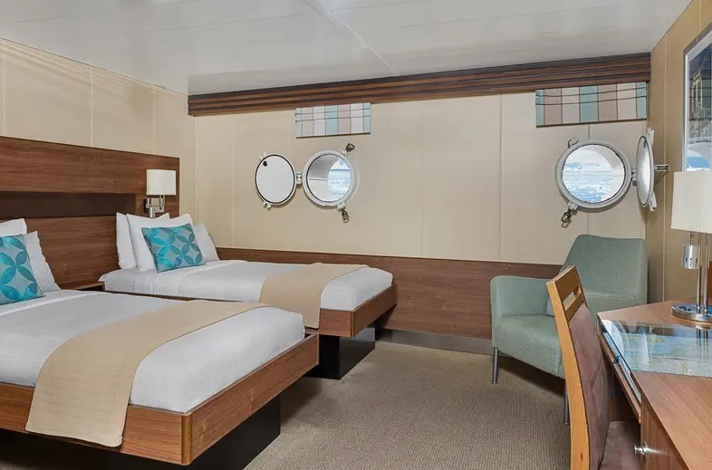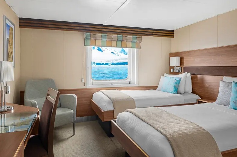 Originally constructed for Norway’s renowned Hurtigruten Coastal Express, National Geographic Explorer was a natural fit for the Lindblad Expeditions fleet thanks to her exceptional manoeuvrability, ice-strengthened hull, and purpose-built expedition design. Now fully stabilised and refitted with over five decades of exploration expertise, she is ideally suited for navigating the most remote corners of the globe—from the rugged coasts of Europe to the icy passages of the polar regions. With vast windows throughout and a Scandinavian-inspired interior, the ship invites guests to stay connected with their environment at every turn.