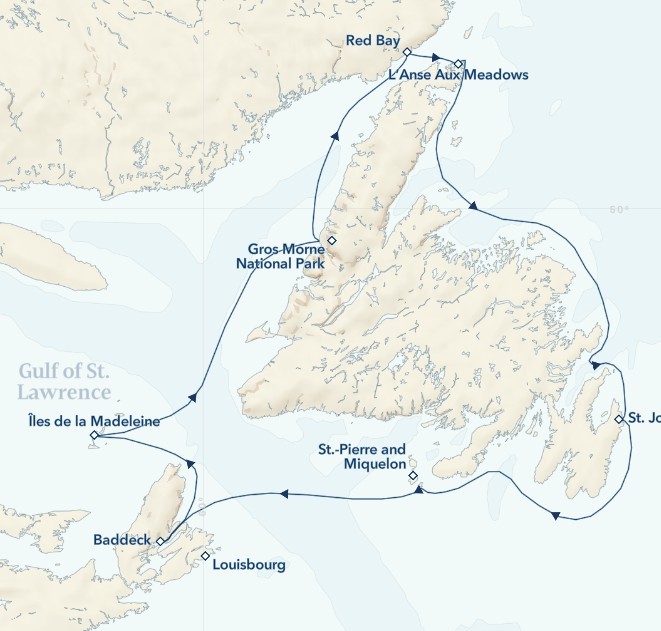 Embark on a circumnavigation of Newfoundland and sail into Eastern Canada’s breathtaking natural beauty. Discover Norse history at L’Anse aux Meadows, the only transatlantic site established by Vikings. See World War II harbor defenses and visit the only North American island that remains under French control. Your journey of pure discovery ventures to the legendary islands of Cape Breton, St-Pierre, and the Îles de la Madeleine in the Gulf of St. Lawrence.
