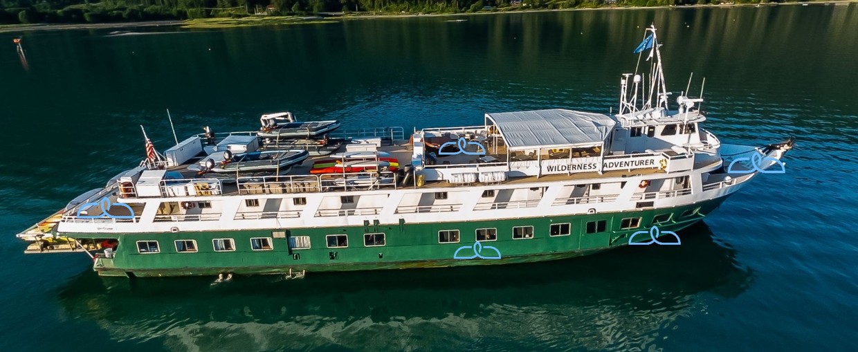 Wilderness Adventurer is a capable expedition vessel built to balance hands-on adventure with onboard comfort. Carrying up to 60 guests, she is designed for active exploration, with generous deck space for wildlife viewing, photography, and time outdoors. Her character is practical and unfussy, with an easy-going atmosphere that supports everything from cold-water plunges to quiet moments observing the landscape. The onboard culture reflects a strong sense of camaraderie, driven by an experienced crew and a shared focus on exploration.
