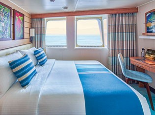 National Geographic Venture is a purpose-built expedition vessel designed to follow the seasons and uncover the wild beauty of North America’s west coast and Baja California. A sister ship to National Geographic Quest, she was constructed at the renowned Nichols Brothers shipyard in the Pacific Northwest, continuing a legacy of shipbuilding excellence that began with Sea Bird and Sea Lion in the 1970s. Carrying 100 guests in 50 comfortable cabins, Venture offers the perfect balance of modern amenities and expedition-ready design, with a shallow draught that allows for access to hidden coves, narrow inlets, and wildlife-rich waters.