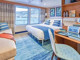 On board, guests enjoy spacious public areas including a lounge with bar and presentation space, a dining room with open seating, a Global Gallery, fitness centre, and a furnished sundeck. A mudroom with lockers keeps expedition gear handy, while the open Bridge invites guests to learn from the Captain and crew. With twin Zodiac platforms for efficient embarkation, Venture is ideally suited for spontaneous wildlife encounters and exploration by paddleboard or kayak. Her design, informed by over 50 years of expedition expertise, ensures an immersive, flexible, and unforgettable experience at sea.