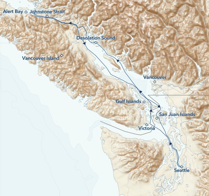 Discover the pristine wilderness, First Nations history, and seaside communities of the Pacific Northwest. Trace the coast from Seattle to British Columbia to explore isolated coves and archipelagos by kayak and Zodiac, and venture ashore to hike through misty forests. Explore among lush Islands, keeping an eye out for marine mammals and bald eagles; visit picturesque coastal towns; and learn about the native cultures that call this region home.