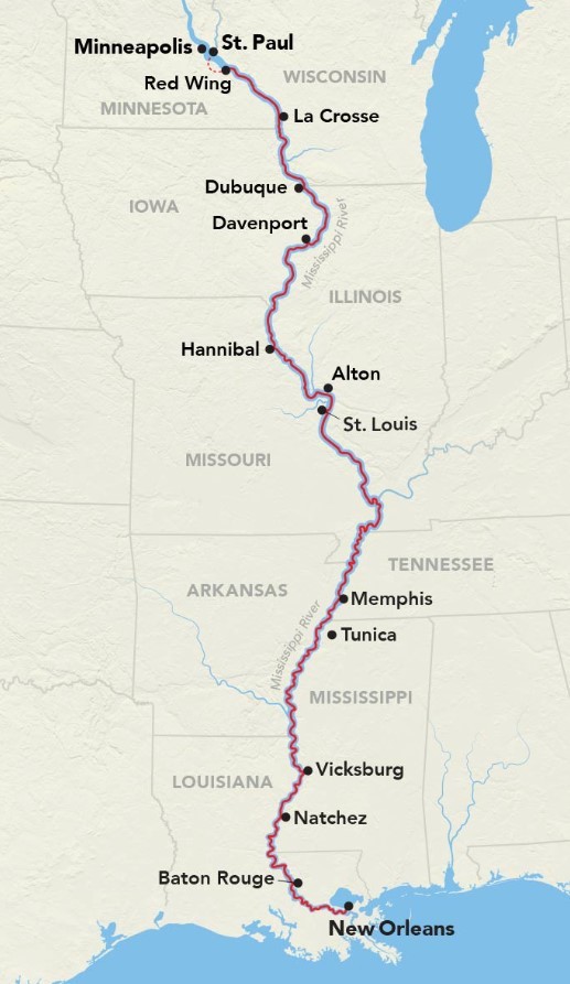 • Iconic Destinations: Visit charming towns like Winona and Hannibal, explore musical cities like Memphis and New Orleans, and delve into Civil War history in Vicksburg.