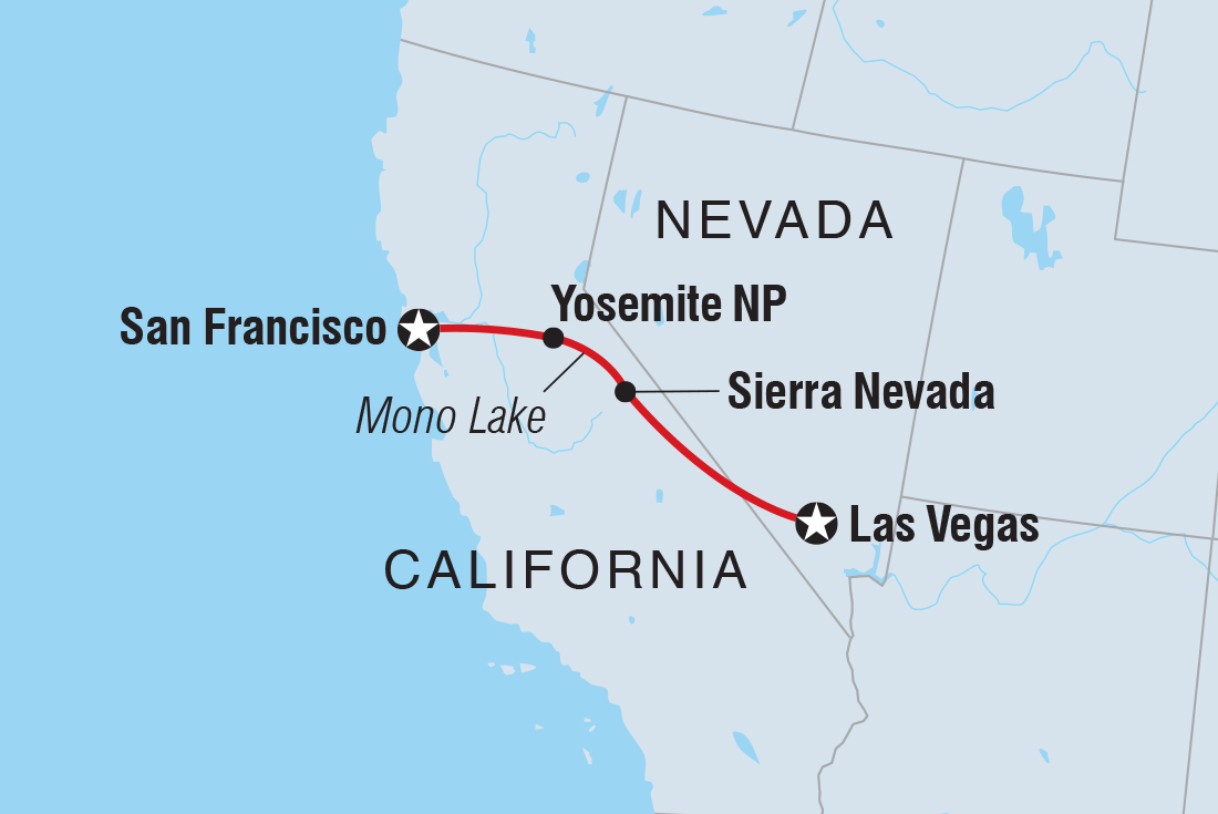 City, coast, hot springs, national parks and a whole load of wide-open roads – take on Vegas to San Fran on this six-day adventure. Stop in the Sierra Nevada mountains, pass by Mono Lake and make your way to the extraordinary Yosemite National Park. With two full days spent here, marvel at Half Dome and hike to the Tuolumne Grove of Giant Sequoias, before having the time to choose your own adventure. Finish up in the culture-filled hub of San Francisco, and toast to one incredible journey!