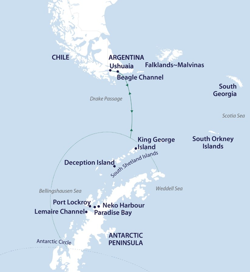 Enjoy a final morning landing in the South Shetland Islands before we re-enter the Drake Passage for our return journey to South America.With lectures and film presentations to complete our Antarctic experience, there is still plenty of time to enjoy the magic of the Southern Ocean and the life that calls it home. There is time for reflection and discussion about what we have seen and experienced. We hope you become ambassadors for Antarctica telling your family, friends and colleagues about your journey to this magical place, advocating for its conservation and preservation so that they might one day visit the region to experience what you have been lucky to see and do here.As we approach the tip of South America, our Captain may sail close to legendary Cape Horn, weather and time permitting.