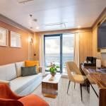 World Voyager is a modern expedition ship built for discovery and polar exploration, accommodating 168 guests in all-balcony suites with direct views of the surrounding wilderness. The vessel combines luxurious comfort with functional design, offering public spaces such as a glass-domed Observation Lounge, theater-style lecture hall, and the Science Hub, where guests engage with onboard scientists and expedition guides. Wellness and recreation facilities include a spa, sauna, heated outdoor pool with Jacuzzis, a gym, and an outdoor running track, ensuring relaxation and activity throughout the voyage.