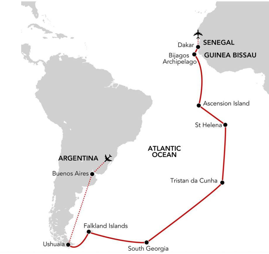 Join us on this epic expedition which will begin at the world’s southernmost city and end some 33 days later in Senegal. A voyage of many thousands of miles that will include some of the most remote and fascinating islands in the southern Atlantic. Our natural world encounters will be extraordinary whether your interest lies in birds, marine life or wildlife; as will the botany and cultural life of the islands.