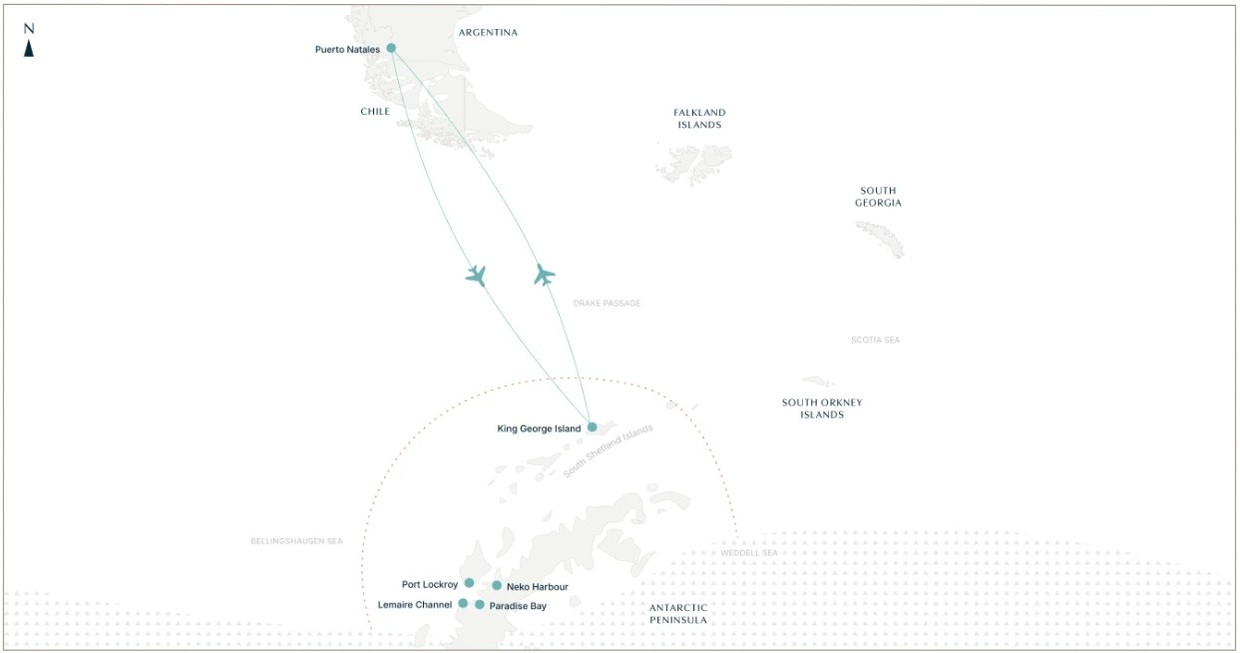 Fly to Antarctica and explore by ship – witness the White Continent in all its pristine, untouched splendour. This vast wilderness reveals countless forms of beauty, from sculpted ice and luminous skies to thriving wildlife and mirror-still seas.
