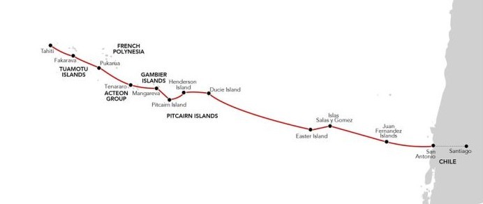 Here is an extraordinary expedition offering the opportunity to experience some of the most beautiful and untouched scenery to be found anywhere in the world. The term unique can be overused in the world of travel, however it is a totally fitting description of this epic exploration of the South Pacific between mainland Chile and the glorious islands of French Polynesia. Along the way we will visit islands and atolls of indescribable beauty, spend time on the island of Pitcairn, the final destination of the Bounty in the late 18th century, discover the mysteries and moais of Easter Island, see the uninhabited Islas Salas y Gomez, explore the Juan Fernandez Islands with their rare and endemic flora and fauna and spend time on Robinson Crusoe Island where Alexander Selkirk was marooned becoming the inspiration for Daniel Defoe’s famous novel.