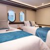Lower Deck: 6 Staterooms (Cabins 1 & 2: 170 ft² / 15.75 m², Cabin 3: 181 ft² / 16.85 m², Cabin 4: 176 ft² / 16.30 m², Cabin 5: 148 ft² / 13.75 m², Cabin 6: 145 ft² / 13.50 m²)