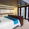 Main Deck: 1 Stateroom, 1 Master Suite with his and her bathrooms (Cabin 7: 132 ft² / 12.25 m², Master Suite: 420 ft² / 39 m²)