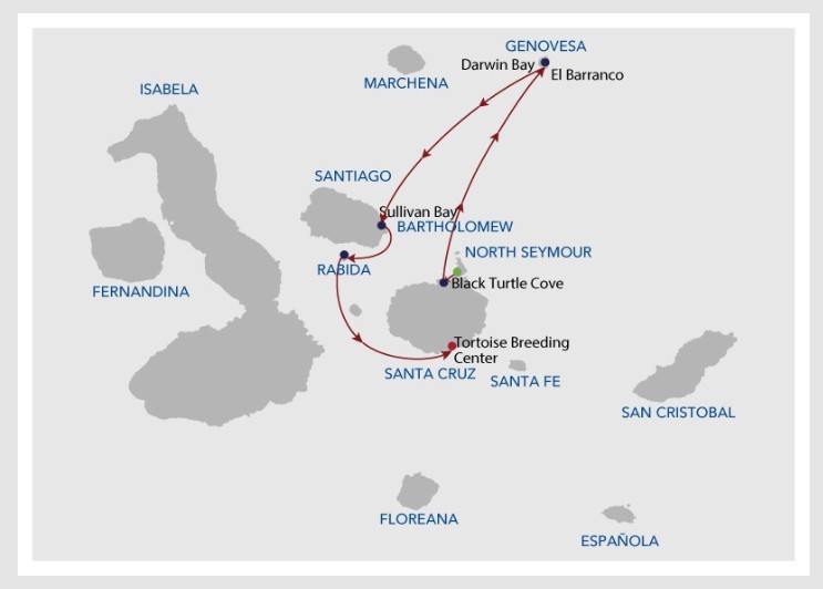 Embark on an unforgettable journey to the Galapagos Islands with this itinerary. The adventure begins with an arrival at Baltra Island Airport, followed by a boat transfer to Santa Cruz. In the afternoon, explore the breathtaking Black Turtle Cove. The following day, discover the wonders of Genovesa Island, starting with El Barranco in the morning and Darwin Bay in the afternoon. On the third day, set foot on Santiago Island to explore the captivating Sullivan Bay in the morning and picturesque Rabida Island in the afternoon. The penultimate day features a visit to the Tortoise Breeding Center on Santa Cruz Island, where you can witness conservation efforts for these magnificent creatures. The trip concludes with a transfer back to Baltra Airport, leaving you with cherished memories of the Galapagos’ extraordinary landscapes and wildlife encounters.