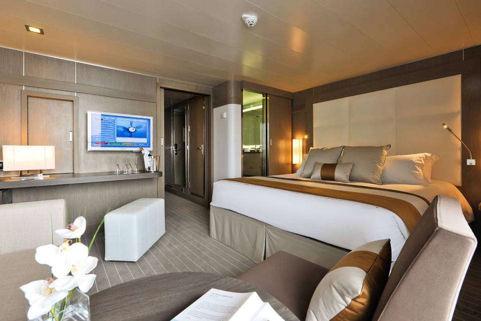 Everything has been done to preserve the independence of each guest to suit their personal tastes: lounges for lectures and shows, a spa in partnership with Carita™, but also more intimate spaces such as the library and internet corner. Comfortable cabins, nearly all with private balcony, are available forfamilies either as triples or as communicating cabins. There is also a games area with Wii™ consoles, children’s menus, and a baby-sitting ser vice.Just as if you were on a private yacht, your time is your own to do as you please.